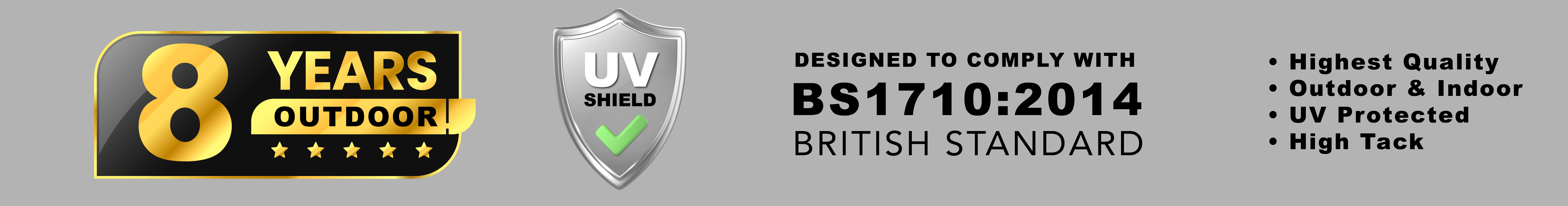 We use high quality vinyl and laminate for extra protection and longevity - the white gloss polymeric vinyl that we use, has been specifically engineered to adhere to LSE (low surface energy) substrates and/or substrates with a low surface temperature. It is designed to last for up to 8 Years outdoors under normal atmospheric conditions.